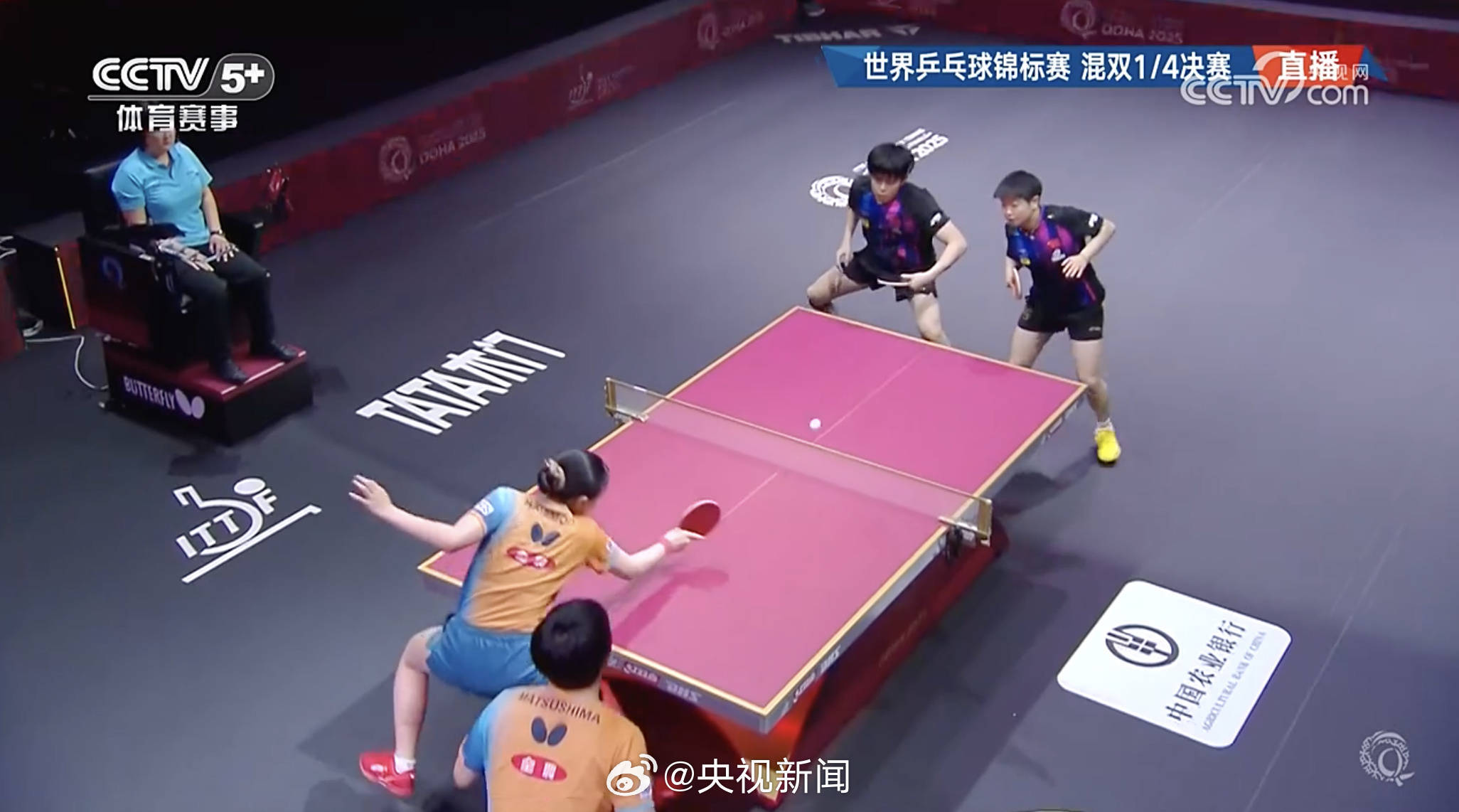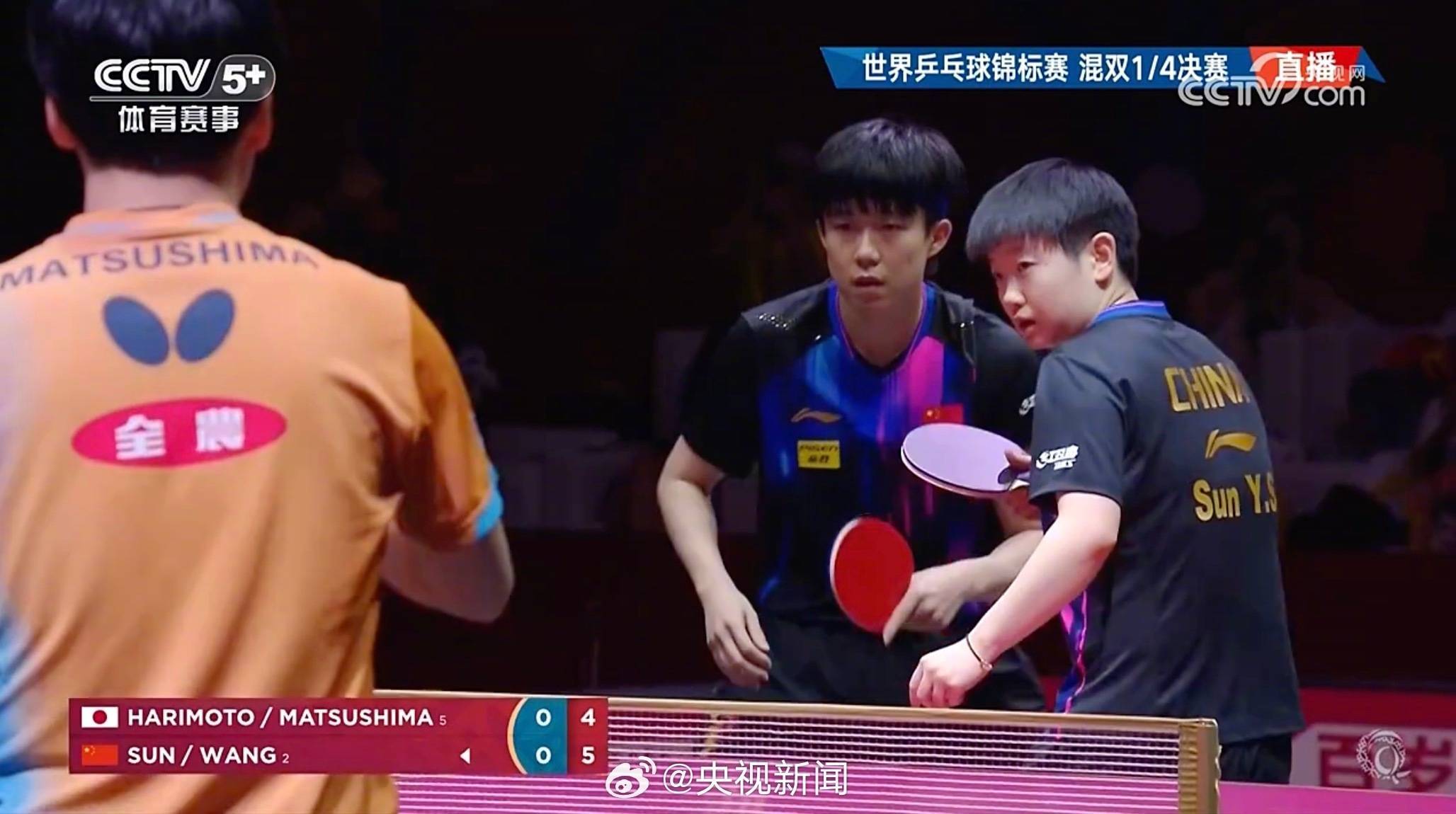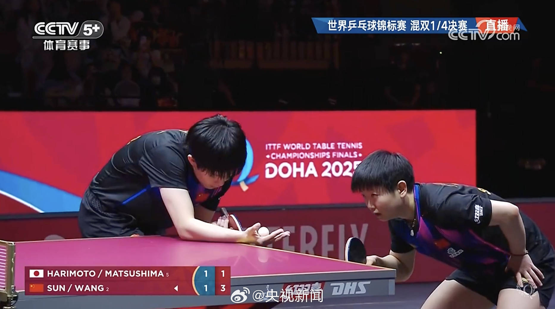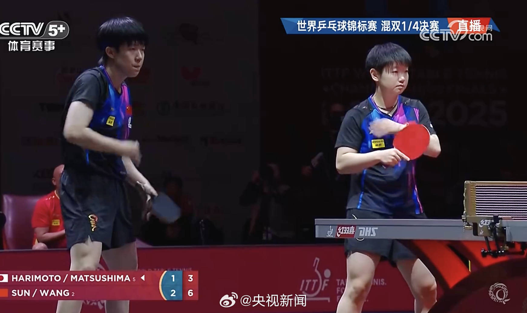 2025多哈世乒赛混双1/4决赛,王楚钦/孙颖莎在先失一局的情况下,3-1逆转松岛辉空/张本好意思和,晋级四强。 r